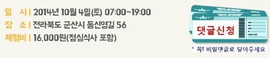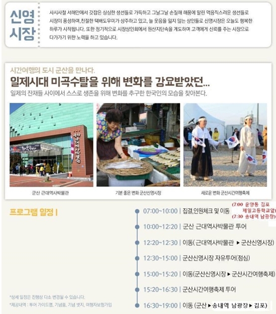 | Çà»ç³»¿ë | ¾È³çÇϼ¼¿ä^^ ÁÁÀº¼¼»ó¹Ù¶ó±â ¼Ò¶ó»ùÀÔ´Ï´Ù. 2014 ÀüÅë½ÃÀå ÃàÁ¦Åõ¾î ¸¶ÄÉÆÃ »ç¾÷À¸·Î 10°³ÀÇ ÀüÅë½ÃÀå°ú Áö¿ªÃàÁ¦¸¦ Áñ±æ ¼ö ÀÖ´Â ÀüÅë½ÃÀå ÃàÁ¦Åõ¾î°¡ ÁøÇàµË´Ï´Ù. 10¿ù 4ÀÏ Åä¿äÀÏ, °¸ª°ú ±º»êÀ» ½ÃÀÛÀ¸·Î ÀüÅë½ÃÀå ÃàÁ¦Åõ¾î´Â 11¿ù±îÁö °è¼Ó À̾îÁú ¿¹Á¤Àä. ÁÁÀº¼¼»ó¹Ù¶ó±â ºí·Î±×¿¡¼´Â ±èÆ÷¿Í ¼Û³»¿ª ³²±¤ÀåÀ» °æÀ¯ÇÏ¿© Ãâ¹ßÇÏ´Â ''±º»ê ±Ù´ëµµ½ÃÕ¥''À» ´ñ±Û·Î ½Åû¹Þ°í ÀÖ½À´Ï´Ù. |